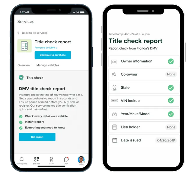 If you’re selling a car, you can use this feature too. Running a title check on your own vehicle shows potential buyers that you’re transparent and trustworthy. It can also surface issues you may not be aware of. You’ll be able to see your car’s title from a buyer’s perspective.